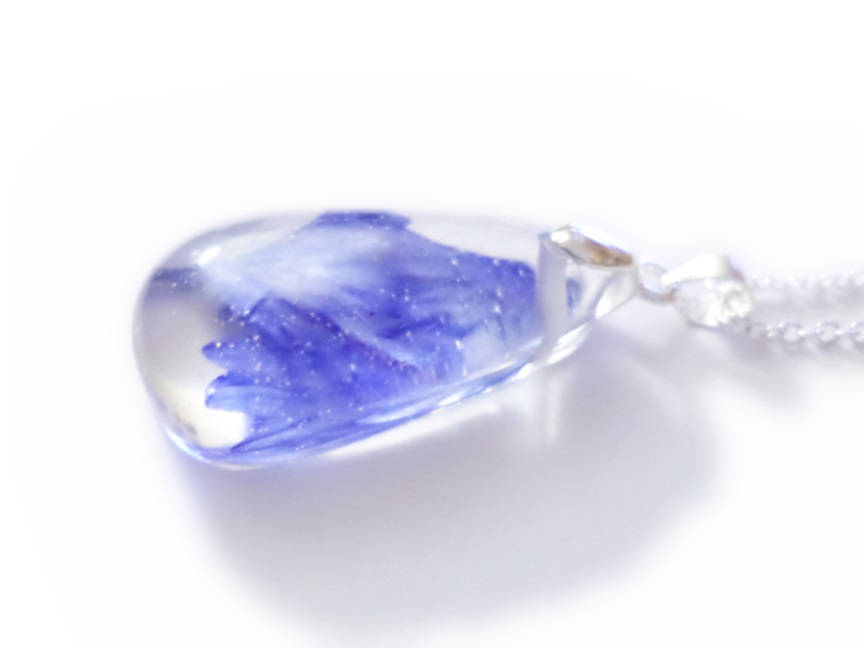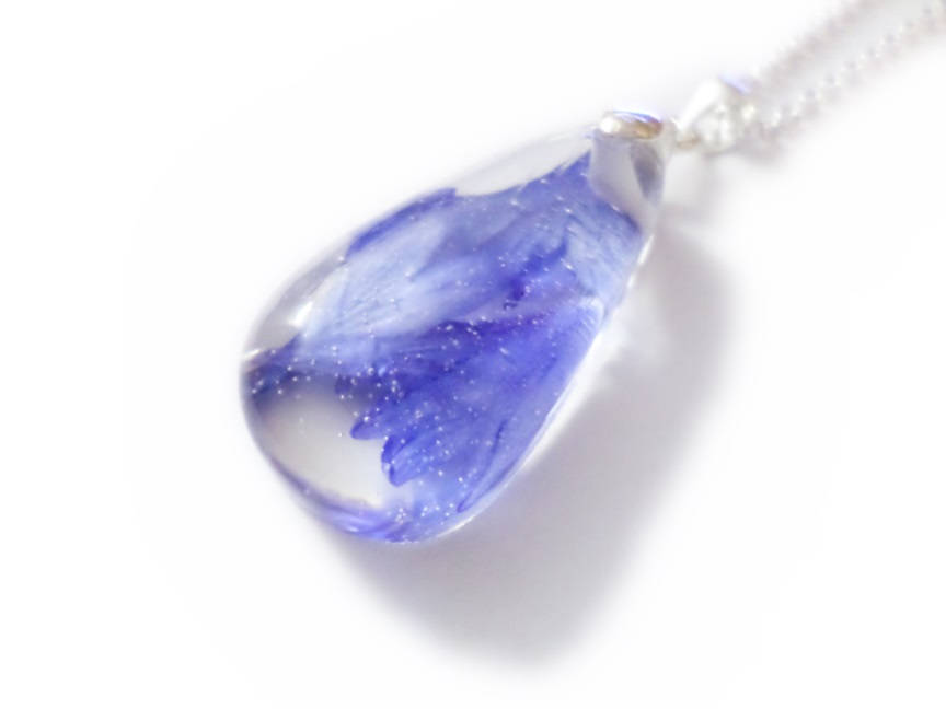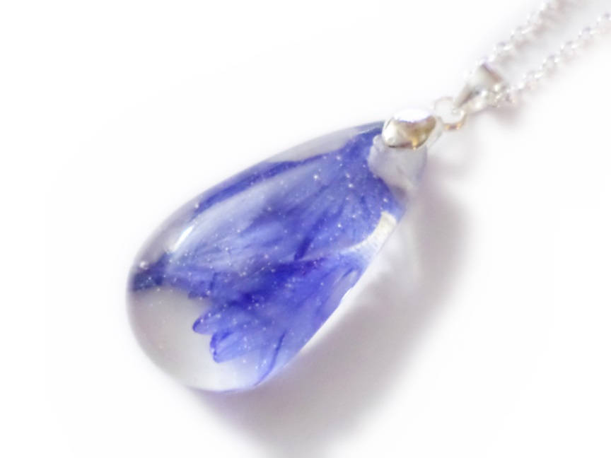 Cornflower Rain Drop Necklace- Resin Necklace - Real Dried Flowers - Nature Jewelry - Valenwood Vixen - Ready to Ship